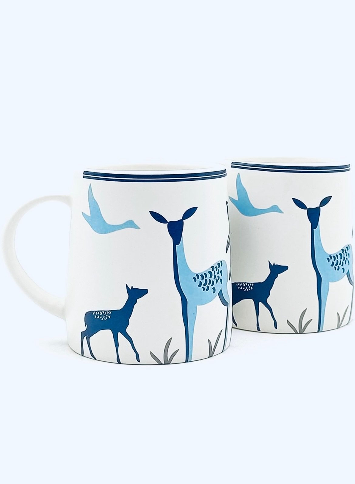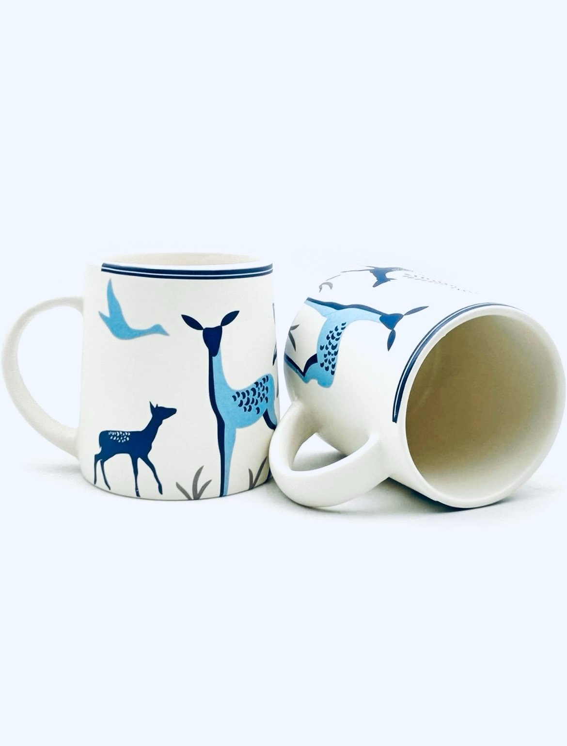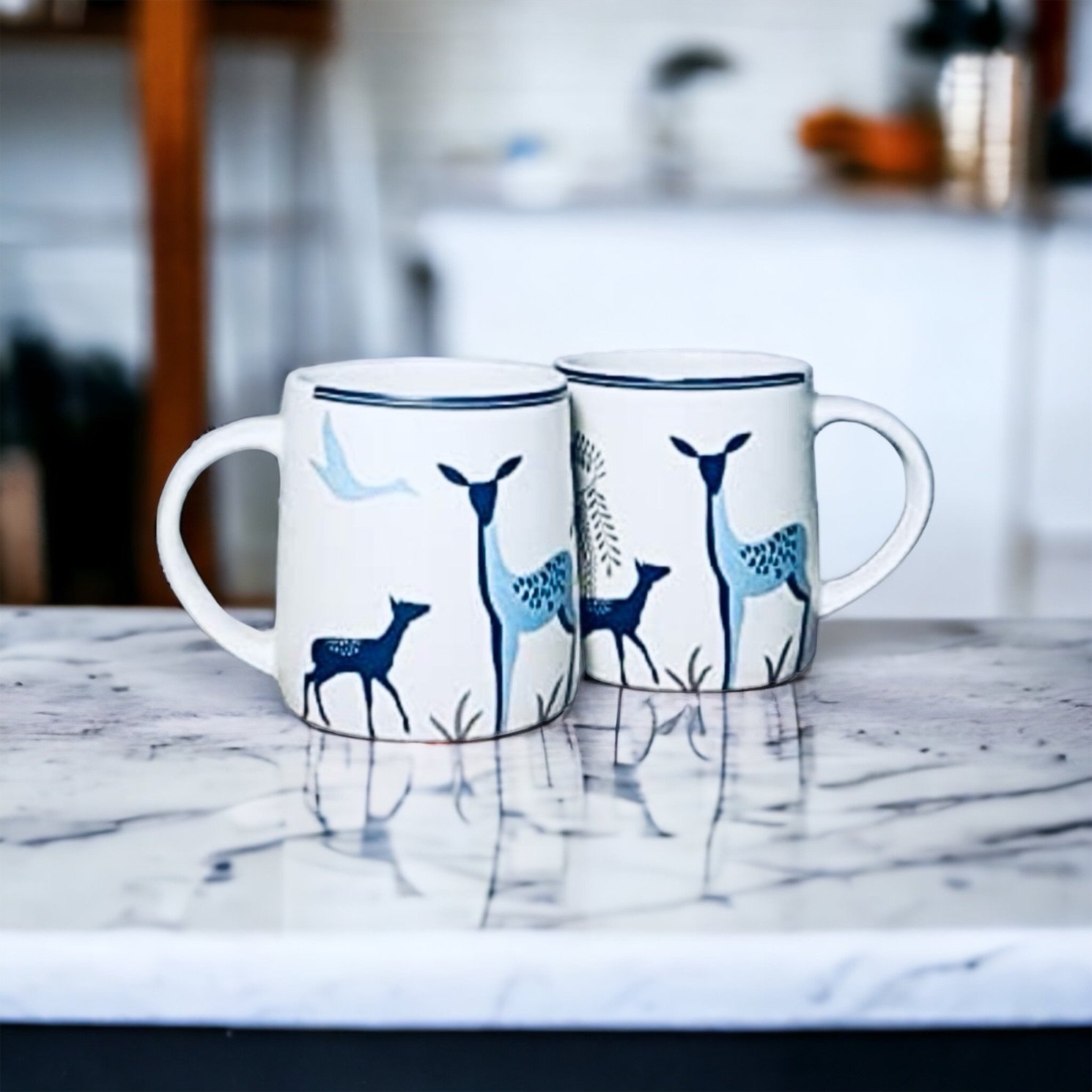 • Set of 2 Mugs: Each mug features a beautiful deer and floral design inspired by nature and modern art.