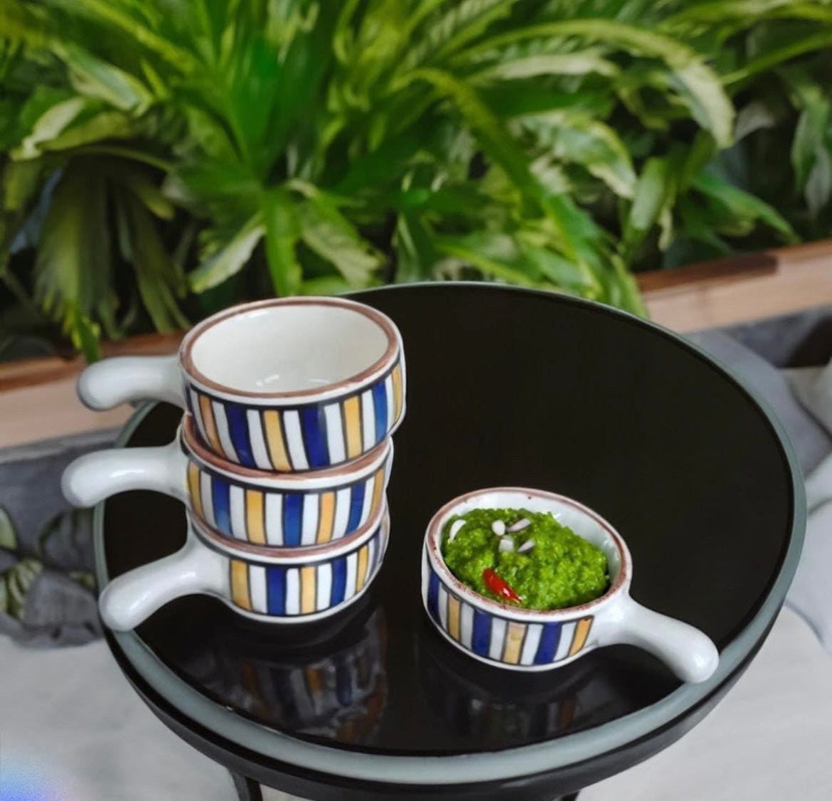 Crafted from high-quality ceramic, these katori trays are not only visually appealing but also durable. Perfect for serving appetizers, snacks, or condiments, they bring a touch of artistry to any occasion. Elevate your dining presentation with this charming Hand-Painted Ceramic Small Katori Tray Set – where craftsmanship meets practicality in every detail.
