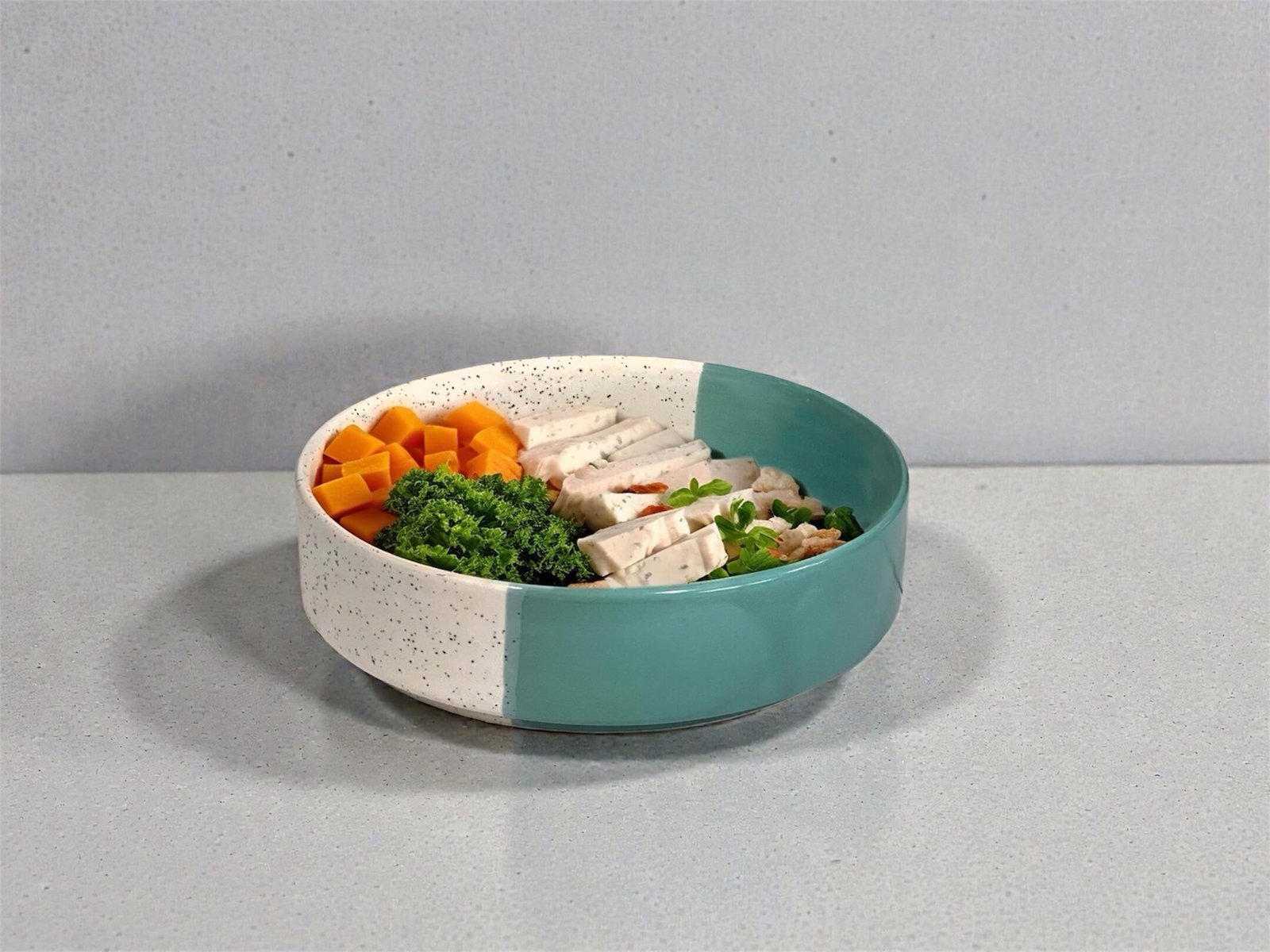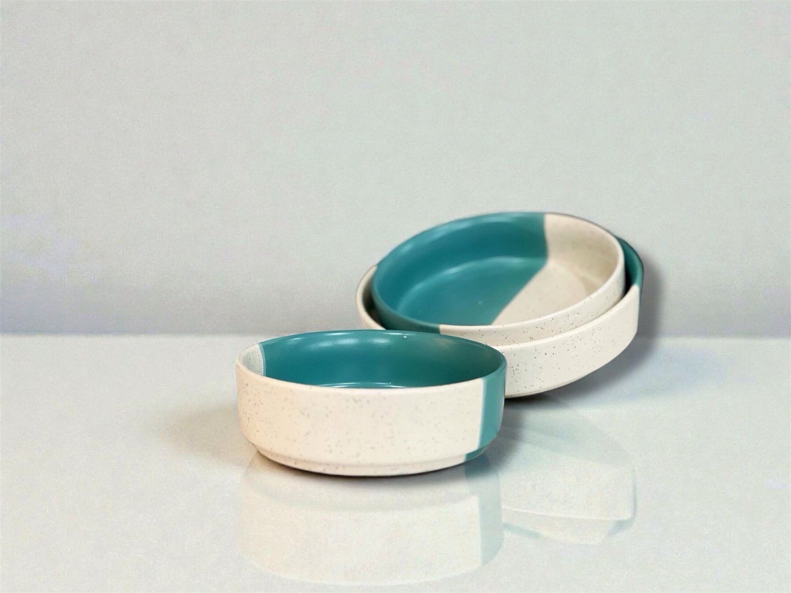 A: The bowls feature a dual-tone matte finish for a contemporary look.
