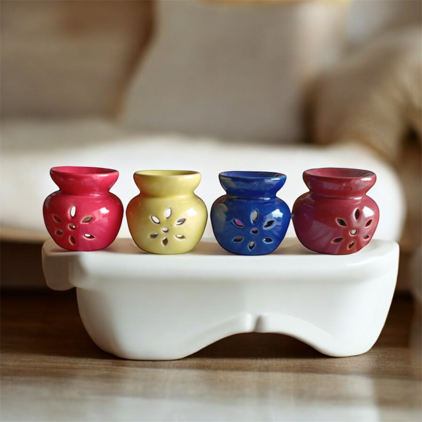 – **4 ceramic aroma diffusers** in random colors, each with a unique and stylish appearance.